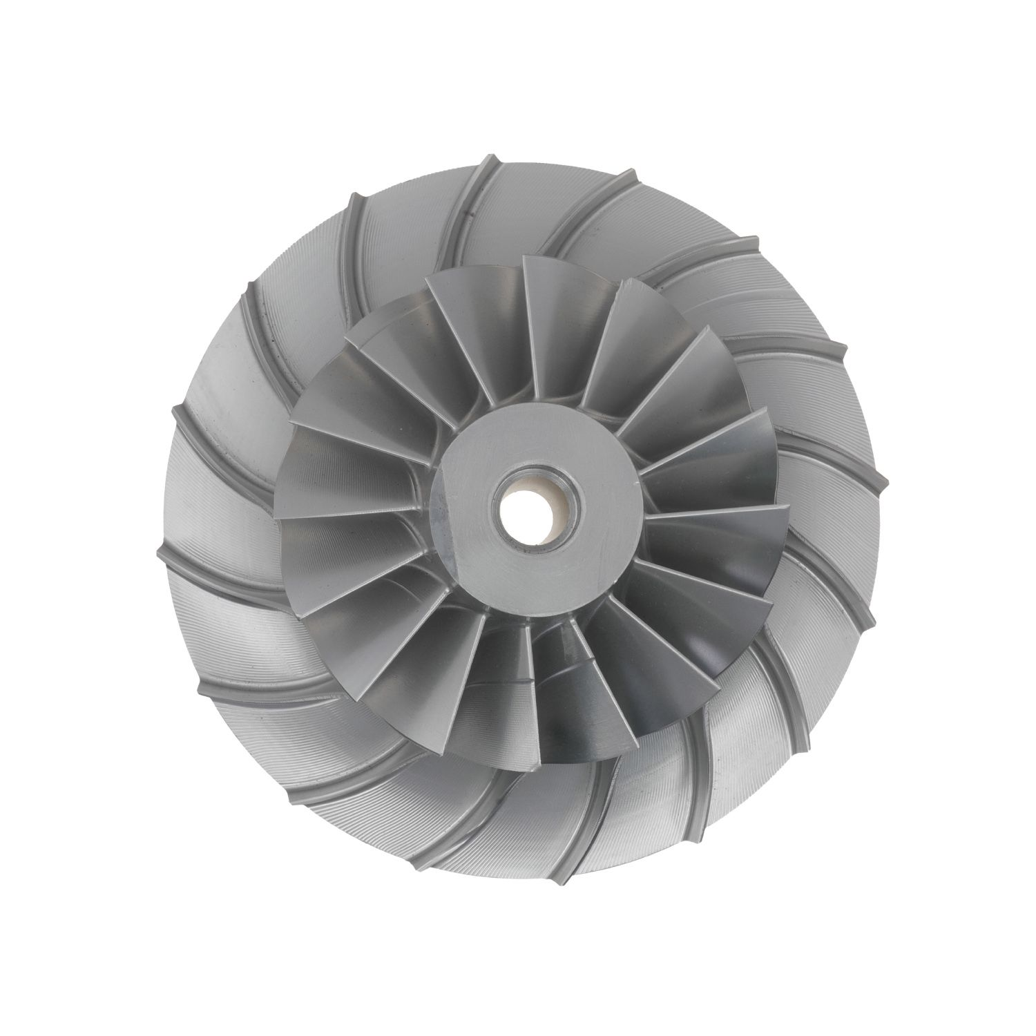 From the metallic texture, lightweight characteristics, and precision machining marks, the material is identified as aluminum alloy TC4. This type of material has high strength and low density, combined with excellent machinability, making it a common material for impeller components in aerospace and high-end power equipment.
